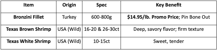 Spring is officially on the horizon, and we are kicking off the month with three heavy hitters that bring both versatility and incredible flavor to your kitchen. From the pristine waters of the Mediterranean to the wonderful Gulf Coast of Texas, these features are selected for their exceptional quality and culinary reliability.